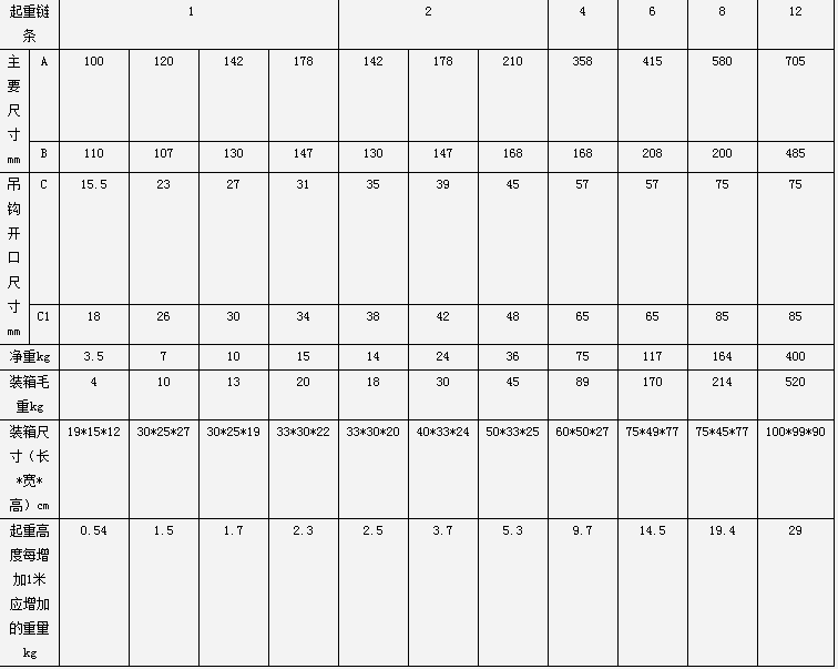 飛鴿HSZ-A型手拉葫蘆10噸參數(shù)圖: | |