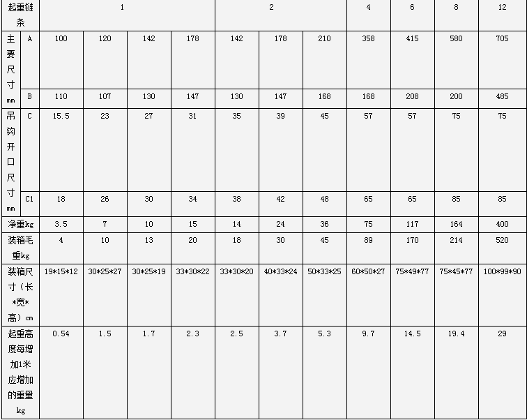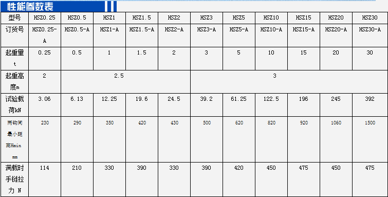 HSZ-A型3噸手拉葫蘆參數(shù):