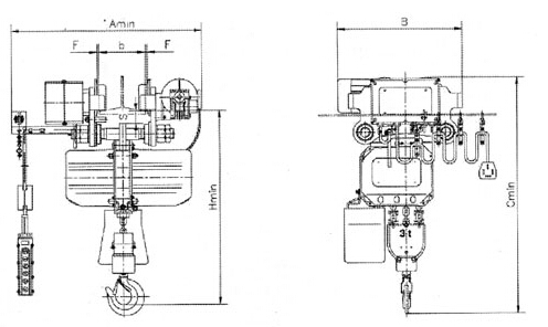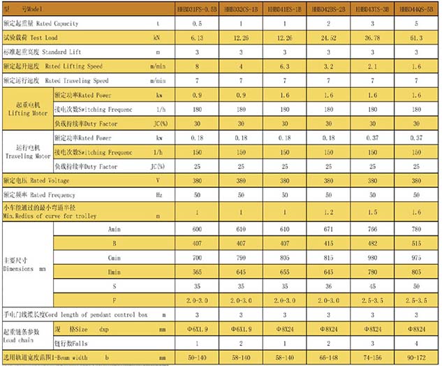 電動小車式環(huán)鏈電動葫蘆HHBD-B型參數(shù)圖: | |