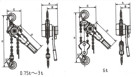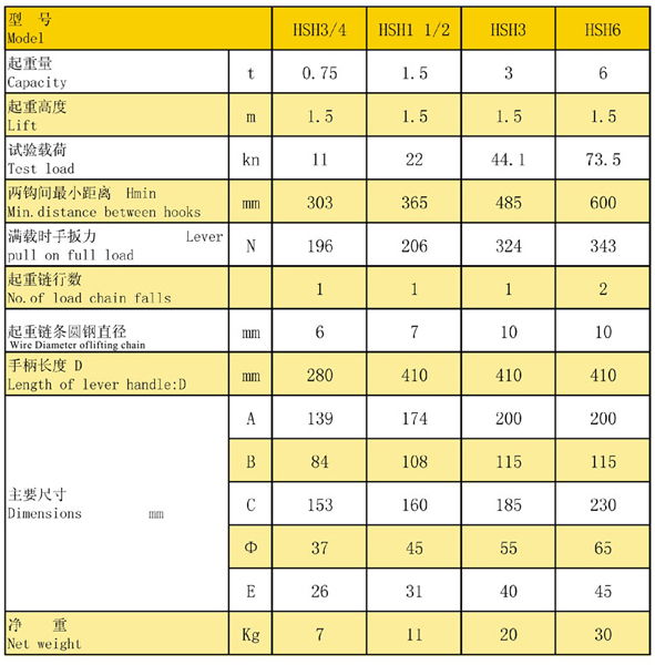 飛鴿HSH-A型手扳葫蘆(0.75t-6t)參數(shù)圖: